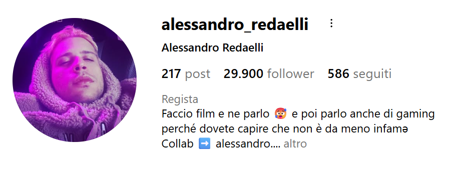 Dal 2021 Alessandro Redaelli si espone sul web anche come content creator a tema cinema, diventando presto uno